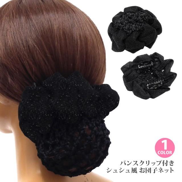 お団子 レディース ヘアネット 大人 まとめ髪 ラメ糸mixシュシュ風お