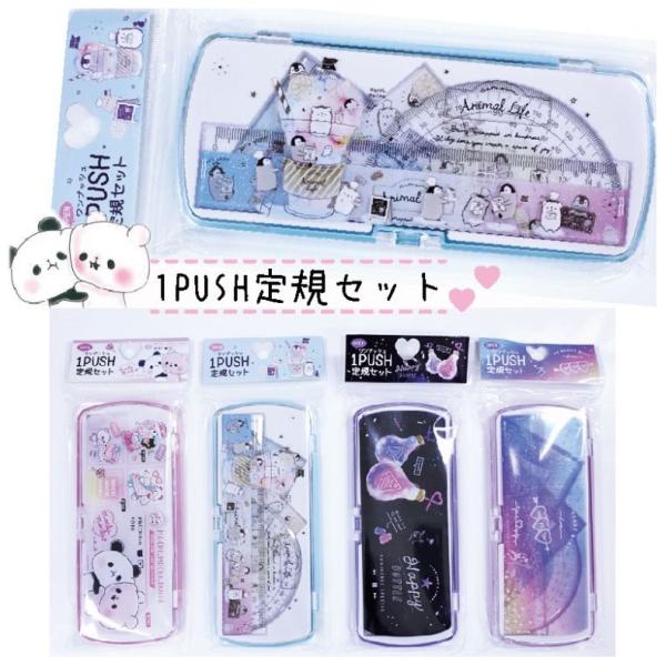 定規セット 可愛い 1push定規セット 15cm定規 分度器 三角定規 韓国