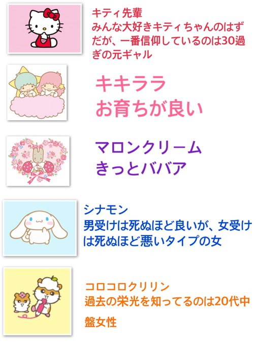 独断と偏見による好きなサンリオキャラクターごとの女のタイプです