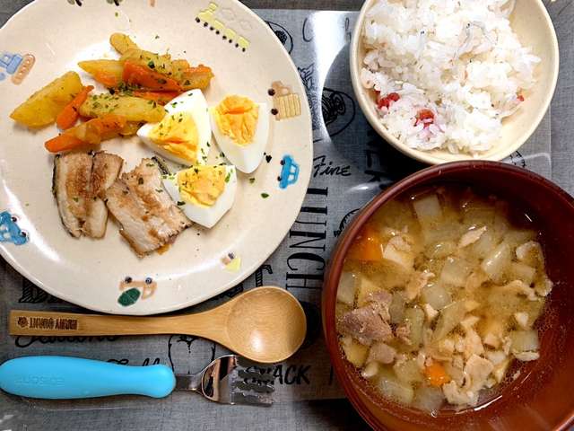 2歳児幼児食 豚汁 プレート 梅しらす レシピ 作り方 By