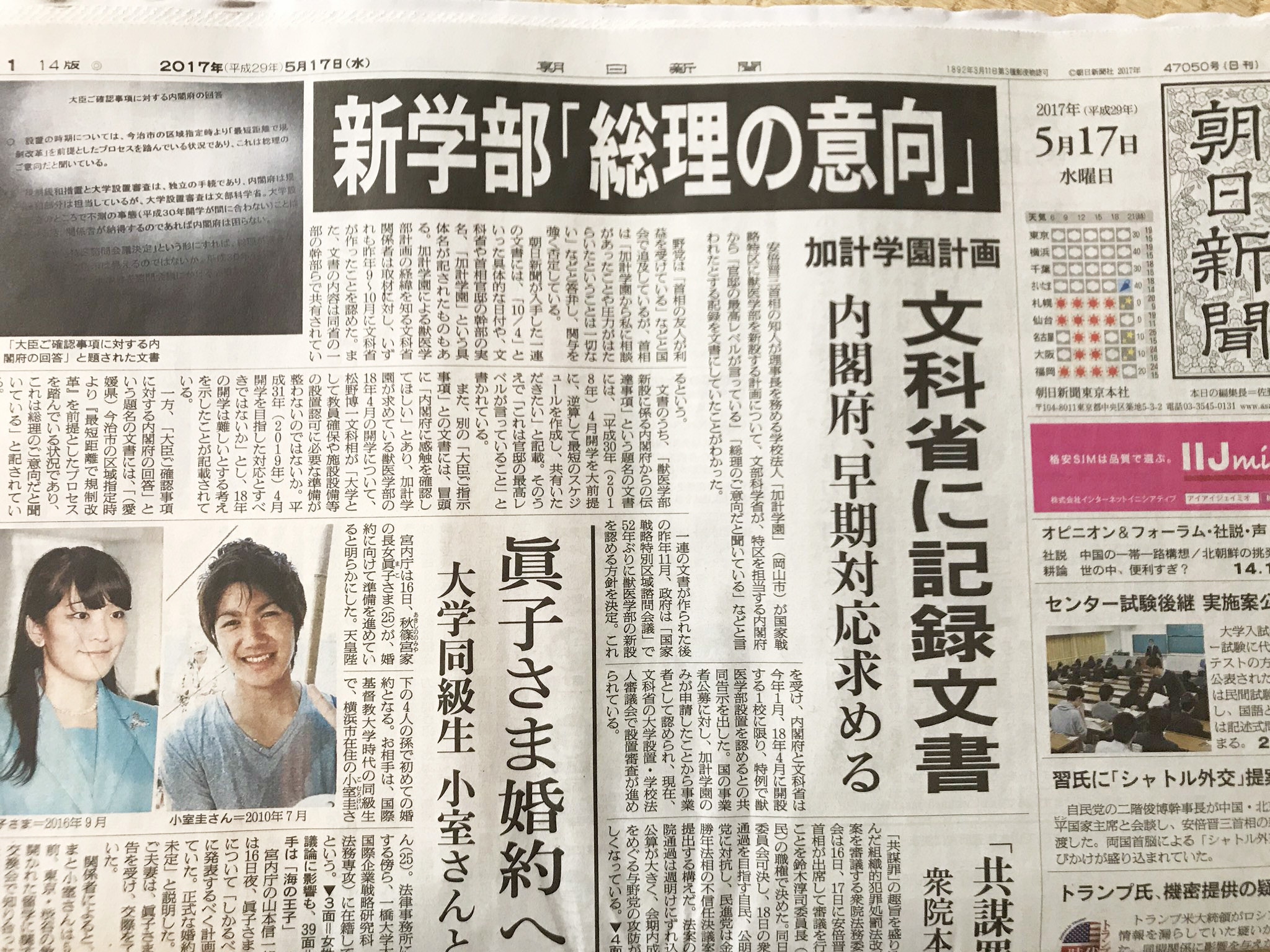 朝日新聞デジタル 北朝鮮 ミサイル失敗 号外です 5 30