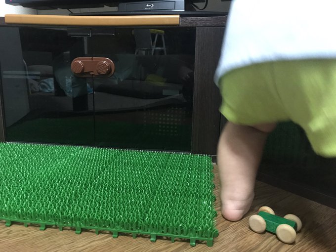 赤ちゃんをテレビに近づけない方法 グレーの人工芝を買いました みゆ