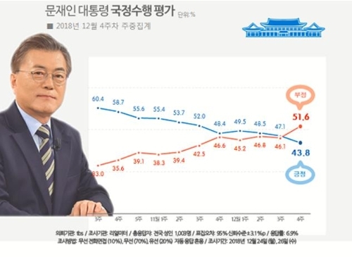 文大統領支持率が44 4 で就任後最低 不支持率は最高更新 聯合