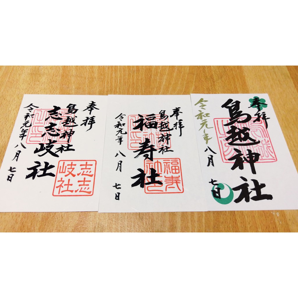 鳥越神社 其末社三張一套令和元年御朱印日本神社 御守 繪馬 御朱印